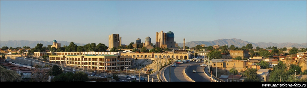 During the urban regeneration of Samarqand prior to the 2007 celebrations of the city’s 2750th  anniversary, the whole square between the Bibi Khanum Mosque and the Bibi Khanum Mausoleum (early 15th century) was completely refurbished. In 2005–6, the octagonal mausoleum, which had been reduced to ruins, was adorned with a new pseudo-Timurid dome on a high drum and rebuilt facades with arched portals. The outer wall of the Bibi Khanum Madrasa was built up above ground level with modern brick to replicate the presumed position of the original guldasta (corner towers). Although no traces of the madrasa remain, Soviet scholars have stylistically compared it to the Ulugh Beg Madrasa on Registan Square.