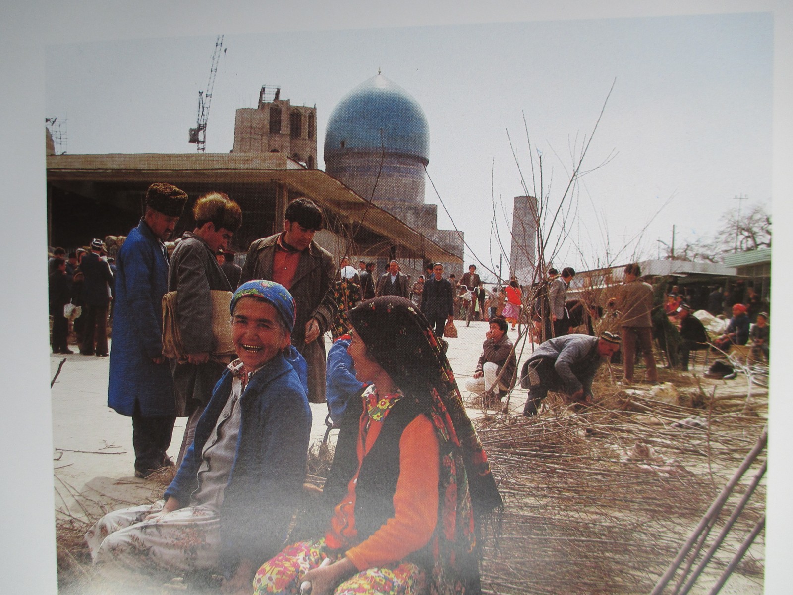 During the urban regeneration of Samarqand prior to the 2007 celebrations of the city’s 2750th  anniversary, the whole square between the Bibi Khanum Mosque and the Bibi Khanum Mausoleum (early 15th century) was completely refurbished. In 2005–6, the octagonal mausoleum, which had been reduced to ruins, was adorned with a new pseudo-Timurid dome on a high drum and rebuilt facades with arched portals. The outer wall of the Bibi Khanum Madrasa was built up above ground level with modern brick to replicate the presumed position of the original guldasta (corner towers). Although no traces of the madrasa remain, Soviet scholars have stylistically compared it to the Ulugh Beg Madrasa on Registan Square.