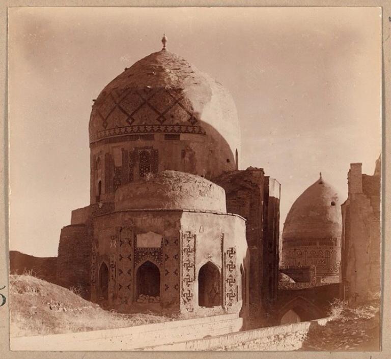 The earliest images of Shah-i Zinda are recorded in the Turkestan Album (1872) commissioned by Konstantin Petrovich von Kaufmann (1818-1882), the first governor general of Russian Turkestan. Excavations of the site started in 1922 and continued until 1925. However, a systematic approach to the study of its architecture, archaeological layers and history did not begin until 1957 when the excavations were led by Nina B. Nemtseva, who worked at Shah-i Zinda until 2001. After 2005 Shah-i Zinda underwent a massive restoration campaign throughout which new mausoleums were built. Original Timurid tile work was substituted by modern mass-produced tiling. The remains of the portal to the 11th-century Qarakhanid Madrasa (1066) were demolished. Several Qurʻanic texts (3:169, 3:170) were added to the main entrance portal originally built in 1435.