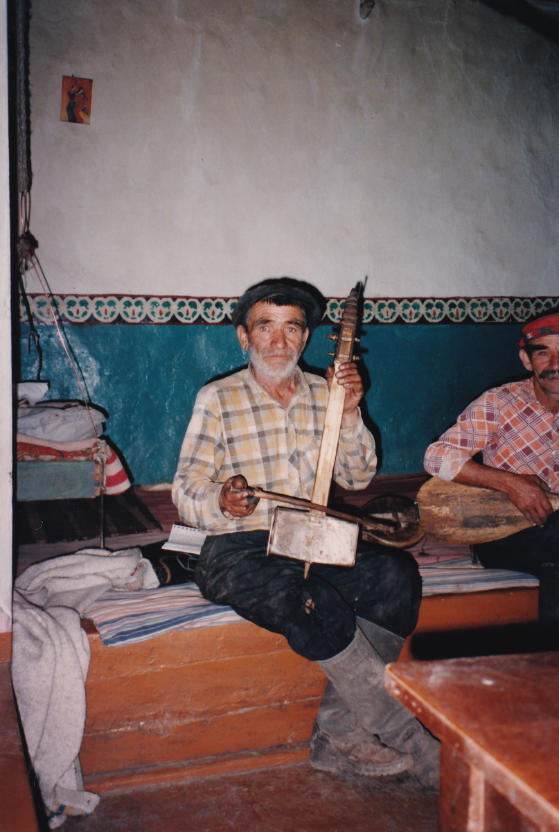 Most musicians in the villages of Badakhshan are trained and experienced but not professional players, at least according to Western standards, insofar as their main occupation is to carry out the daily duties belonging to their sedentary agricultural village life. There are only a few professional musicians who can make an, although modest, living out of their performances, like the setar player Mamadato Tavalāyev from Khorog. They generally can’t read notes and learn the music and the songs by ear from their family or from other musicians in their village. In many cases they are unable to give information about tunings, melodic modes or other musicological details, but fortunately some performers, especially Jonboz Dushanbiyev, Mojon and Mamadato Tavalāyev are really specialists and were very helpful in giving many details, orally and from their notebooks, about the place of music in their Ismaili context, melodic modes, performance practice, context of performances and the origin of their instruments. However, the majority of the performers are amateurs who regard their performances as a service to the community, and as a consequence they generally refused money for recordings in the beginning, but due to the poverty in the country and a lot of insistence of the researchers they finally would accept payment. Each village has its own performers, who are in many cases excellent and experienced singers and players with an exceptional memory for text and melody, capable of playing and singing for hours. Even in the most remote villages performers appeared to know their poets and poetry and produced in many cases notebooks with written texts of classical Persian poets. The human voice is predominant and still plays an important role in preserving and disseminating the oral culture of Badakhshan, and the role of the instruments is mainly to accompany the singer. Pure instrumental music forms only a small part of the performance practice in the villages.