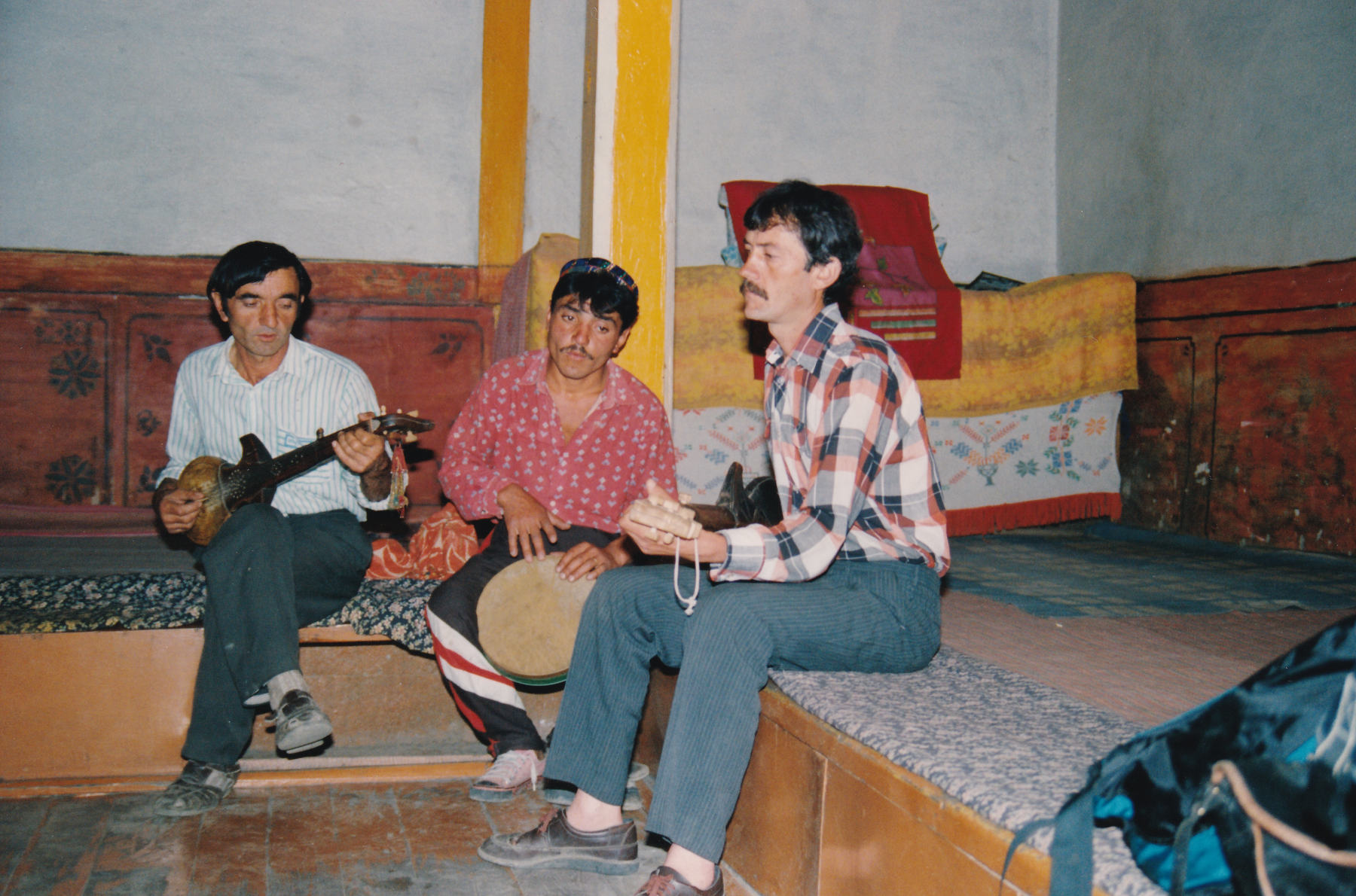Most musicians in the villages of Badakhshan are trained and experienced but not professional players, at least according to Western standards, insofar as their main occupation is to carry out the daily duties belonging to their sedentary agricultural village life. There are only a few professional musicians who can make an, although modest, living out of their performances, like the setar player Mamadato Tavalāyev from Khorog. They generally can’t read notes and learn the music and the songs by ear from their family or from other musicians in their village. In many cases they are unable to give information about tunings, melodic modes or other musicological details, but fortunately some performers, especially Jonboz Dushanbiyev, Mojon and Mamadato Tavalāyev are really specialists and were very helpful in giving many details, orally and from their notebooks, about the place of music in their Ismaili context, melodic modes, performance practice, context of performances and the origin of their instruments. However, the majority of the performers are amateurs who regard their performances as a service to the community, and as a consequence they generally refused money for recordings in the beginning, but due to the poverty in the country and a lot of insistence of the researchers they finally would accept payment. Each village has its own performers, who are in many cases excellent and experienced singers and players with an exceptional memory for text and melody, capable of playing and singing for hours. Even in the most remote villages performers appeared to know their poets and poetry and produced in many cases notebooks with written texts of classical Persian poets. The human voice is predominant and still plays an important role in preserving and disseminating the oral culture of Badakhshan, and the role of the instruments is mainly to accompany the singer. Pure instrumental music forms only a small part of the performance practice in the villages.