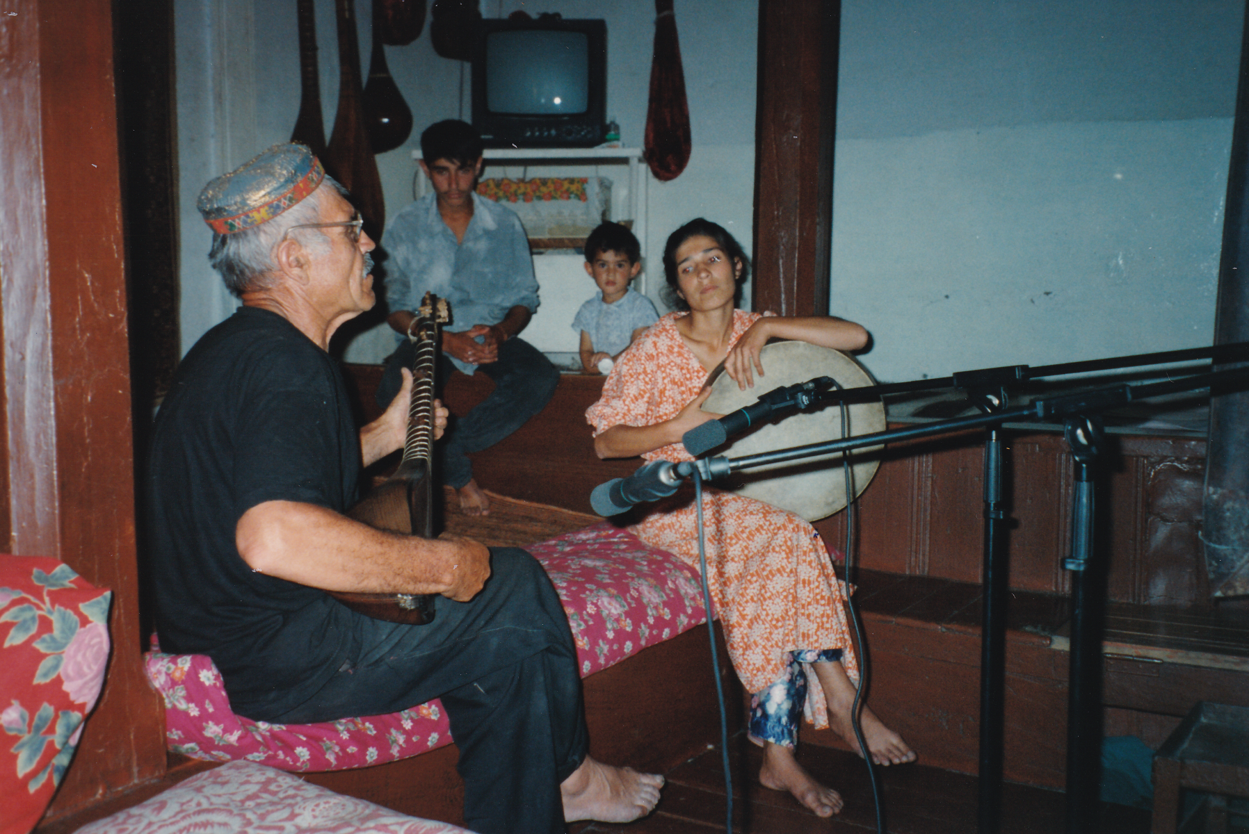 Most musicians in the villages of Badakhshan are trained and experienced but not professional players, at least according to Western standards, insofar as their main occupation is to carry out the daily duties belonging to their sedentary agricultural village life. There are only a few professional musicians who can make an, although modest, living out of their performances, like the setar player Mamadato Tavalāyev from Khorog. They generally can’t read notes and learn the music and the songs by ear from their family or from other musicians in their village. In many cases they are unable to give information about tunings, melodic modes or other musicological details, but fortunately some performers, especially Jonboz Dushanbiyev, Mojon and Mamadato Tavalāyev are really specialists and were very helpful in giving many details, orally and from their notebooks, about the place of music in their Ismaili context, melodic modes, performance practice, context of performances and the origin of their instruments. However, the majority of the performers are amateurs who regard their performances as a service to the community, and as a consequence they generally refused money for recordings in the beginning, but due to the poverty in the country and a lot of insistence of the researchers they finally would accept payment. Each village has its own performers, who are in many cases excellent and experienced singers and players with an exceptional memory for text and melody, capable of playing and singing for hours. Even in the most remote villages performers appeared to know their poets and poetry and produced in many cases notebooks with written texts of classical Persian poets. The human voice is predominant and still plays an important role in preserving and disseminating the oral culture of Badakhshan, and the role of the instruments is mainly to accompany the singer. Pure instrumental music forms only a small part of the performance practice in the villages.