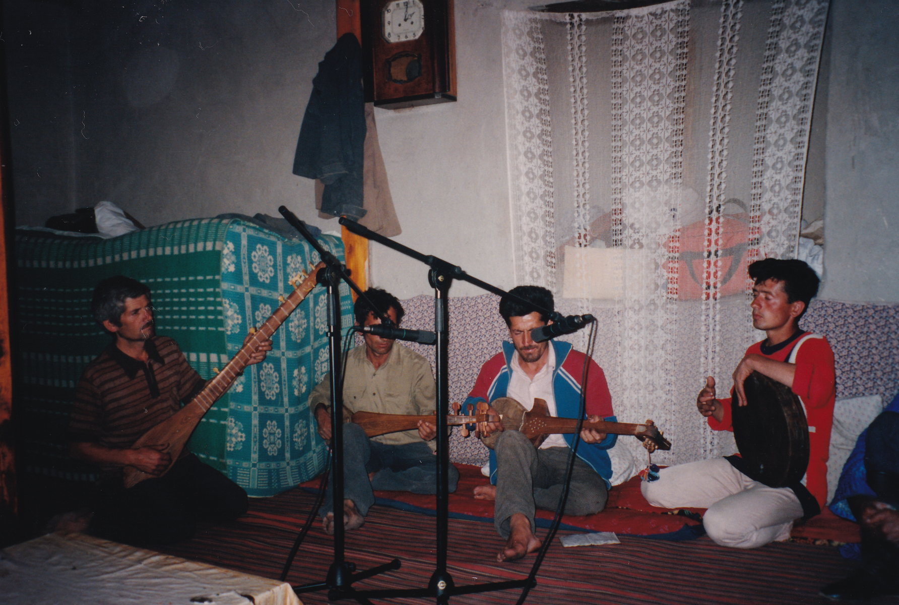 Most musicians in the villages of Badakhshan are trained and experienced but not professional players, at least according to Western standards, insofar as their main occupation is to carry out the daily duties belonging to their sedentary agricultural village life. There are only a few professional musicians who can make an, although modest, living out of their performances, like the setar player Mamadato Tavalāyev from Khorog. They generally can’t read notes and learn the music and the songs by ear from their family or from other musicians in their village. In many cases they are unable to give information about tunings, melodic modes or other musicological details, but fortunately some performers, especially Jonboz Dushanbiyev, Mojon and Mamadato Tavalāyev are really specialists and were very helpful in giving many details, orally and from their notebooks, about the place of music in their Ismaili context, melodic modes, performance practice, context of performances and the origin of their instruments. However, the majority of the performers are amateurs who regard their performances as a service to the community, and as a consequence they generally refused money for recordings in the beginning, but due to the poverty in the country and a lot of insistence of the researchers they finally would accept payment. Each village has its own performers, who are in many cases excellent and experienced singers and players with an exceptional memory for text and melody, capable of playing and singing for hours. Even in the most remote villages performers appeared to know their poets and poetry and produced in many cases notebooks with written texts of classical Persian poets. The human voice is predominant and still plays an important role in preserving and disseminating the oral culture of Badakhshan, and the role of the instruments is mainly to accompany the singer. Pure instrumental music forms only a small part of the performance practice in the villages.
