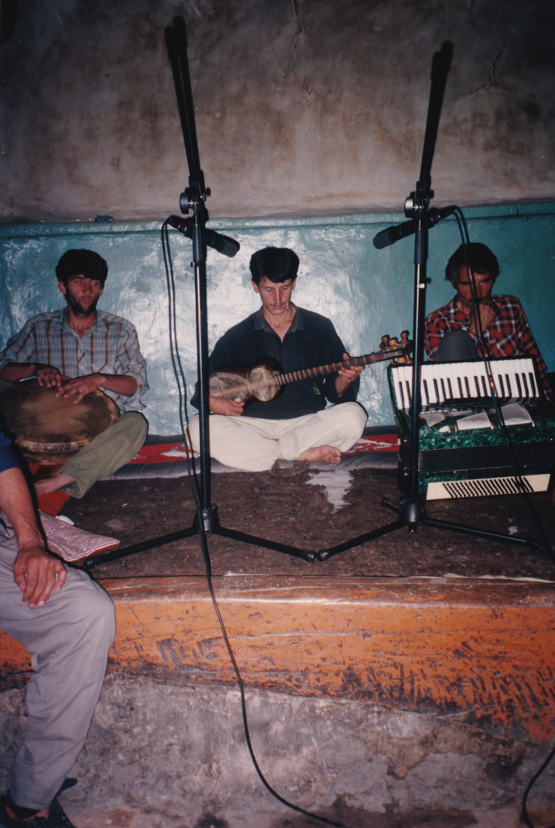 Most musicians in the villages of Badakhshan are trained and experienced but not professional players, at least according to Western standards, insofar as their main occupation is to carry out the daily duties belonging to their sedentary agricultural village life. There are only a few professional musicians who can make an, although modest, living out of their performances, like the setar player Mamadato Tavalāyev from Khorog. They generally can’t read notes and learn the music and the songs by ear from their family or from other musicians in their village. In many cases they are unable to give information about tunings, melodic modes or other musicological details, but fortunately some performers, especially Jonboz Dushanbiyev, Mojon and Mamadato Tavalāyev are really specialists and were very helpful in giving many details, orally and from their notebooks, about the place of music in their Ismaili context, melodic modes, performance practice, context of performances and the origin of their instruments. However, the majority of the performers are amateurs who regard their performances as a service to the community, and as a consequence they generally refused money for recordings in the beginning, but due to the poverty in the country and a lot of insistence of the researchers they finally would accept payment. Each village has its own performers, who are in many cases excellent and experienced singers and players with an exceptional memory for text and melody, capable of playing and singing for hours. Even in the most remote villages performers appeared to know their poets and poetry and produced in many cases notebooks with written texts of classical Persian poets. The human voice is predominant and still plays an important role in preserving and disseminating the oral culture of Badakhshan, and the role of the instruments is mainly to accompany the singer. Pure instrumental music forms only a small part of the performance practice in the villages.
