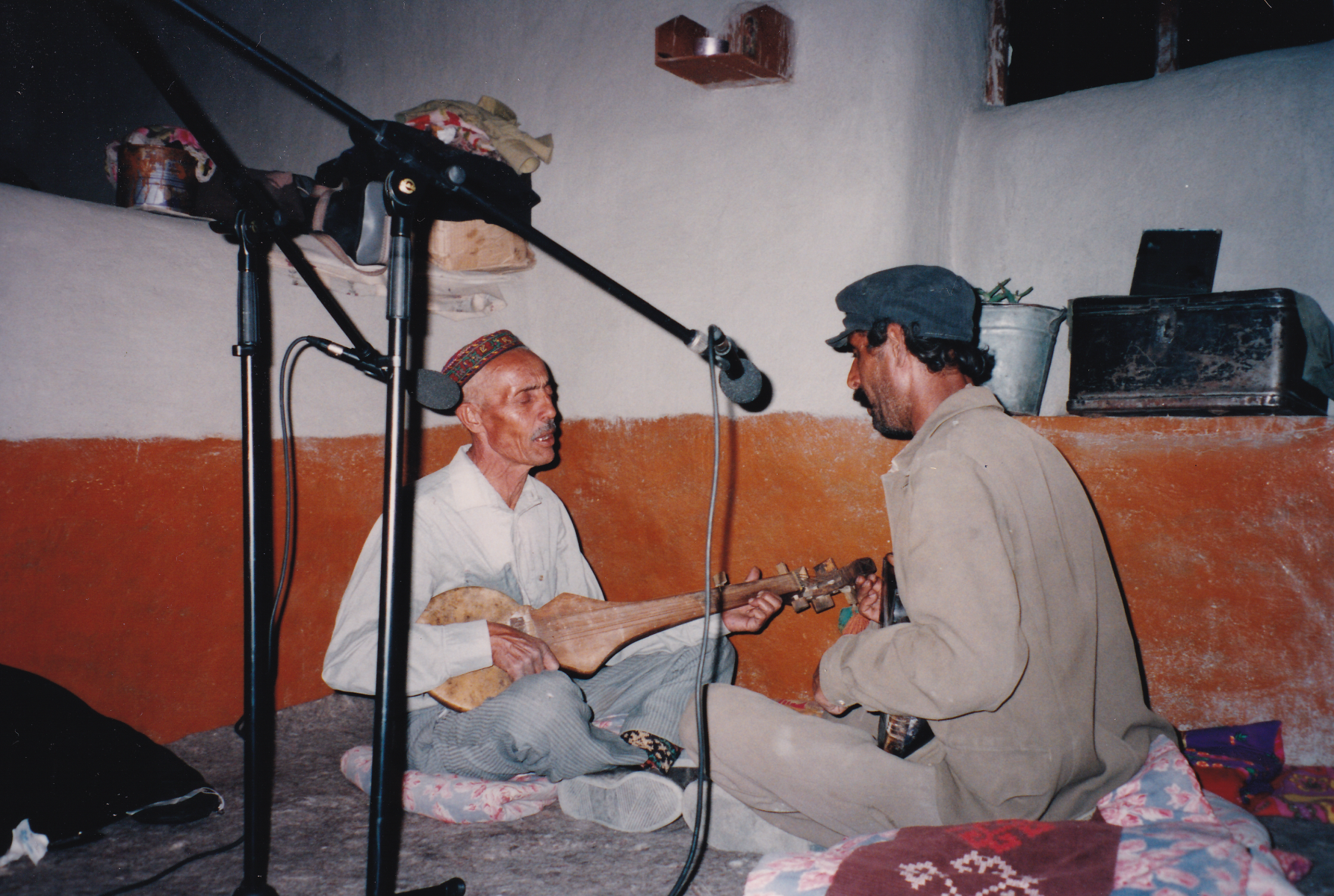 Most musicians in the villages of Badakhshan are trained and experienced but not professional players, at least according to Western standards, insofar as their main occupation is to carry out the daily duties belonging to their sedentary agricultural village life. There are only a few professional musicians who can make an, although modest, living out of their performances, like the setar player Mamadato Tavalāyev from Khorog. They generally can’t read notes and learn the music and the songs by ear from their family or from other musicians in their village. In many cases they are unable to give information about tunings, melodic modes or other musicological details, but fortunately some performers, especially Jonboz Dushanbiyev, Mojon and Mamadato Tavalāyev are really specialists and were very helpful in giving many details, orally and from their notebooks, about the place of music in their Ismaili context, melodic modes, performance practice, context of performances and the origin of their instruments. However, the majority of the performers are amateurs who regard their performances as a service to the community, and as a consequence they generally refused money for recordings in the beginning, but due to the poverty in the country and a lot of insistence of the researchers they finally would accept payment. Each village has its own performers, who are in many cases excellent and experienced singers and players with an exceptional memory for text and melody, capable of playing and singing for hours. Even in the most remote villages performers appeared to know their poets and poetry and produced in many cases notebooks with written texts of classical Persian poets. The human voice is predominant and still plays an important role in preserving and disseminating the oral culture of Badakhshan, and the role of the instruments is mainly to accompany the singer. Pure instrumental music forms only a small part of the performance practice in the villages.