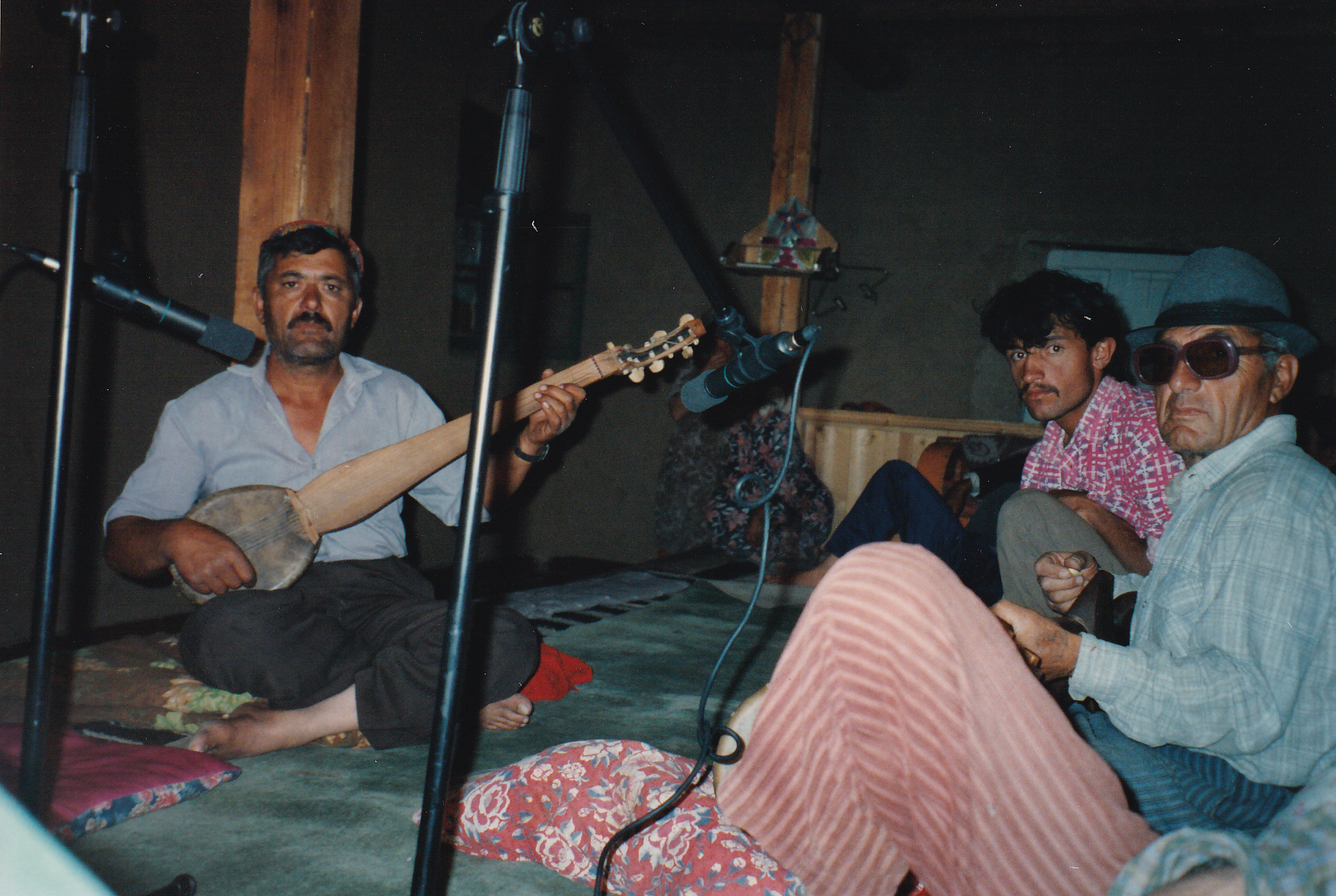 Most musicians in the villages of Badakhshan are trained and experienced but not professional players, at least according to Western standards, insofar as their main occupation is to carry out the daily duties belonging to their sedentary agricultural village life. There are only a few professional musicians who can make an, although modest, living out of their performances, like the setar player Mamadato Tavalāyev from Khorog. They generally can’t read notes and learn the music and the songs by ear from their family or from other musicians in their village. In many cases they are unable to give information about tunings, melodic modes or other musicological details, but fortunately some performers, especially Jonboz Dushanbiyev, Mojon and Mamadato Tavalāyev are really specialists and were very helpful in giving many details, orally and from their notebooks, about the place of music in their Ismaili context, melodic modes, performance practice, context of performances and the origin of their instruments. However, the majority of the performers are amateurs who regard their performances as a service to the community, and as a consequence they generally refused money for recordings in the beginning, but due to the poverty in the country and a lot of insistence of the researchers they finally would accept payment. Each village has its own performers, who are in many cases excellent and experienced singers and players with an exceptional memory for text and melody, capable of playing and singing for hours. Even in the most remote villages performers appeared to know their poets and poetry and produced in many cases notebooks with written texts of classical Persian poets. The human voice is predominant and still plays an important role in preserving and disseminating the oral culture of Badakhshan, and the role of the instruments is mainly to accompany the singer. Pure instrumental music forms only a small part of the performance practice in the villages.