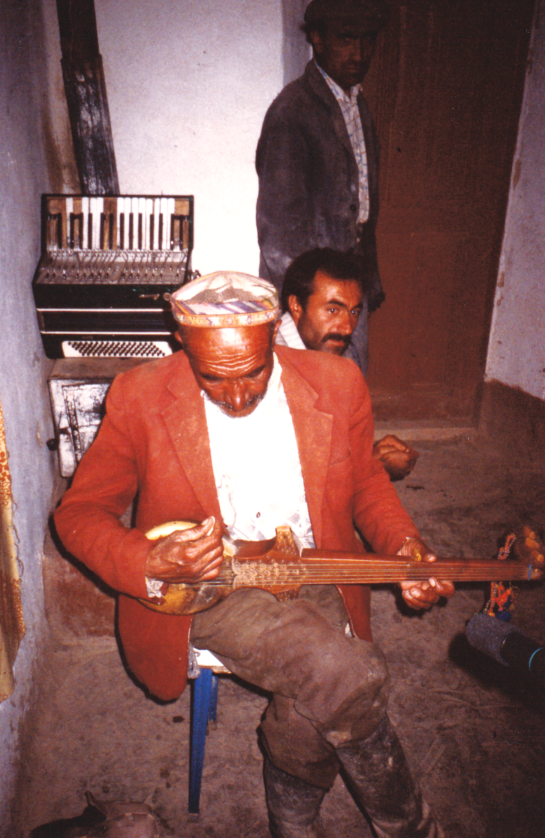 Most musicians in the villages of Badakhshan are trained and experienced but not professional players, at least according to Western standards, insofar as their main occupation is to carry out the daily duties belonging to their sedentary agricultural village life. There are only a few professional musicians who can make an, although modest, living out of their performances, like the setar player Mamadato Tavalāyev from Khorog. They generally can’t read notes and learn the music and the songs by ear from their family or from other musicians in their village. In many cases they are unable to give information about tunings, melodic modes or other musicological details, but fortunately some performers, especially Jonboz Dushanbiyev, Mojon and Mamadato Tavalāyev are really specialists and were very helpful in giving many details, orally and from their notebooks, about the place of music in their Ismaili context, melodic modes, performance practice, context of performances and the origin of their instruments. However, the majority of the performers are amateurs who regard their performances as a service to the community, and as a consequence they generally refused money for recordings in the beginning, but due to the poverty in the country and a lot of insistence of the researchers they finally would accept payment. Each village has its own performers, who are in many cases excellent and experienced singers and players with an exceptional memory for text and melody, capable of playing and singing for hours. Even in the most remote villages performers appeared to know their poets and poetry and produced in many cases notebooks with written texts of classical Persian poets. The human voice is predominant and still plays an important role in preserving and disseminating the oral culture of Badakhshan, and the role of the instruments is mainly to accompany the singer. Pure instrumental music forms only a small part of the performance practice in the villages.
